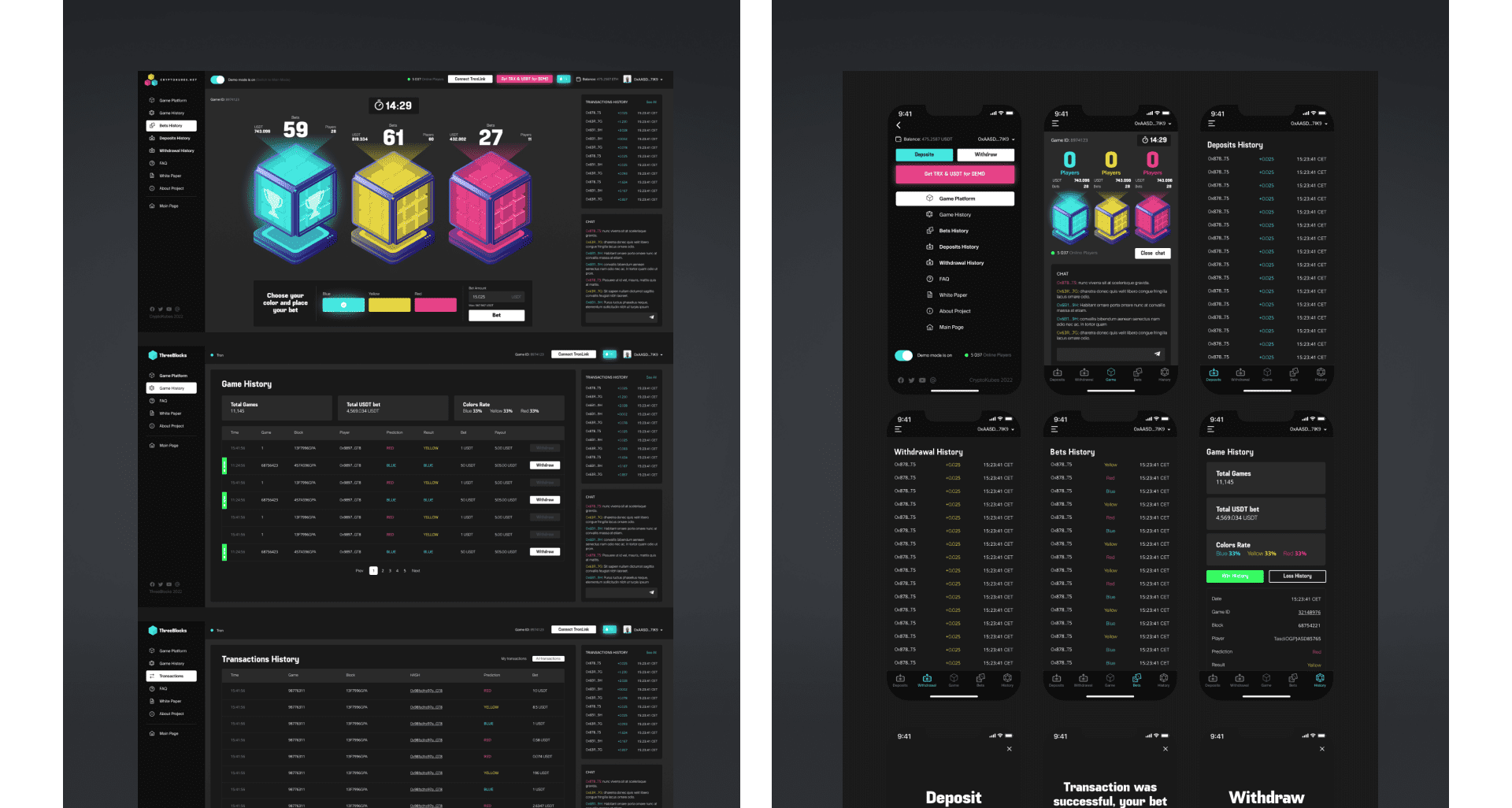 Создание многопользовательской азартной игры на основе смарт-контрактов Tron с использованием игровой валюты USDT. Этот проект требовал разработки функционала для игрового процесса, включая серверный расчет результатов, а также возможности отслеживания истории игр, ставок, депозитов и выводов для пользователей. Кроме того, необходимо было создать многофункциональную панель администратора, предоставляющую всю необходимую статистику по доходности, комиссиям и балансам, а также обеспечить интеграцию с кошельком TronLink для пользователей.