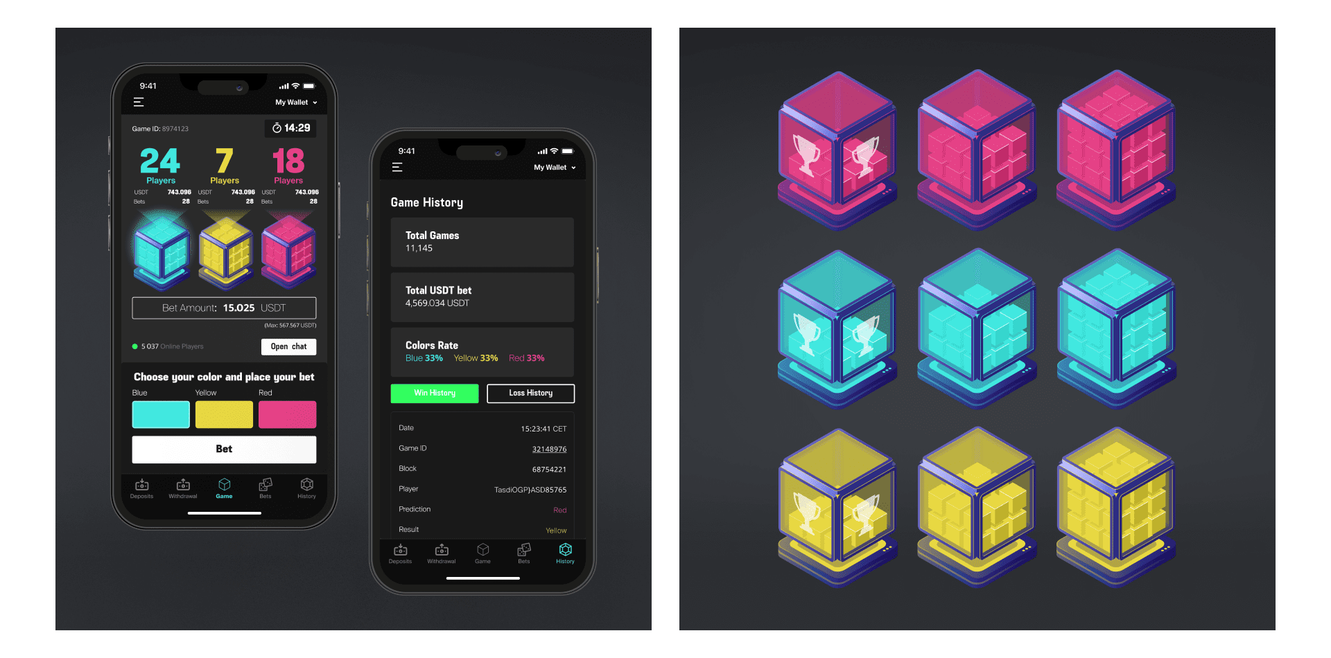 Концепция игры основана на использовании смарт-контрактов Tron и игровой валюты USDT. Это многопользовательская азартная игра с возможностью проведения игр с несколькими игроками и серверным расчетом результатов. Игроки имеют доступ к истории своих игр, ставок, депозитов и выводов. Для администраторов предусмотрена многофункциональная панель управления, где они могут просматривать всю статистику по доходности, комиссиям и балансам. Для взаимодействия с кошельком TronLink реализован коннект.