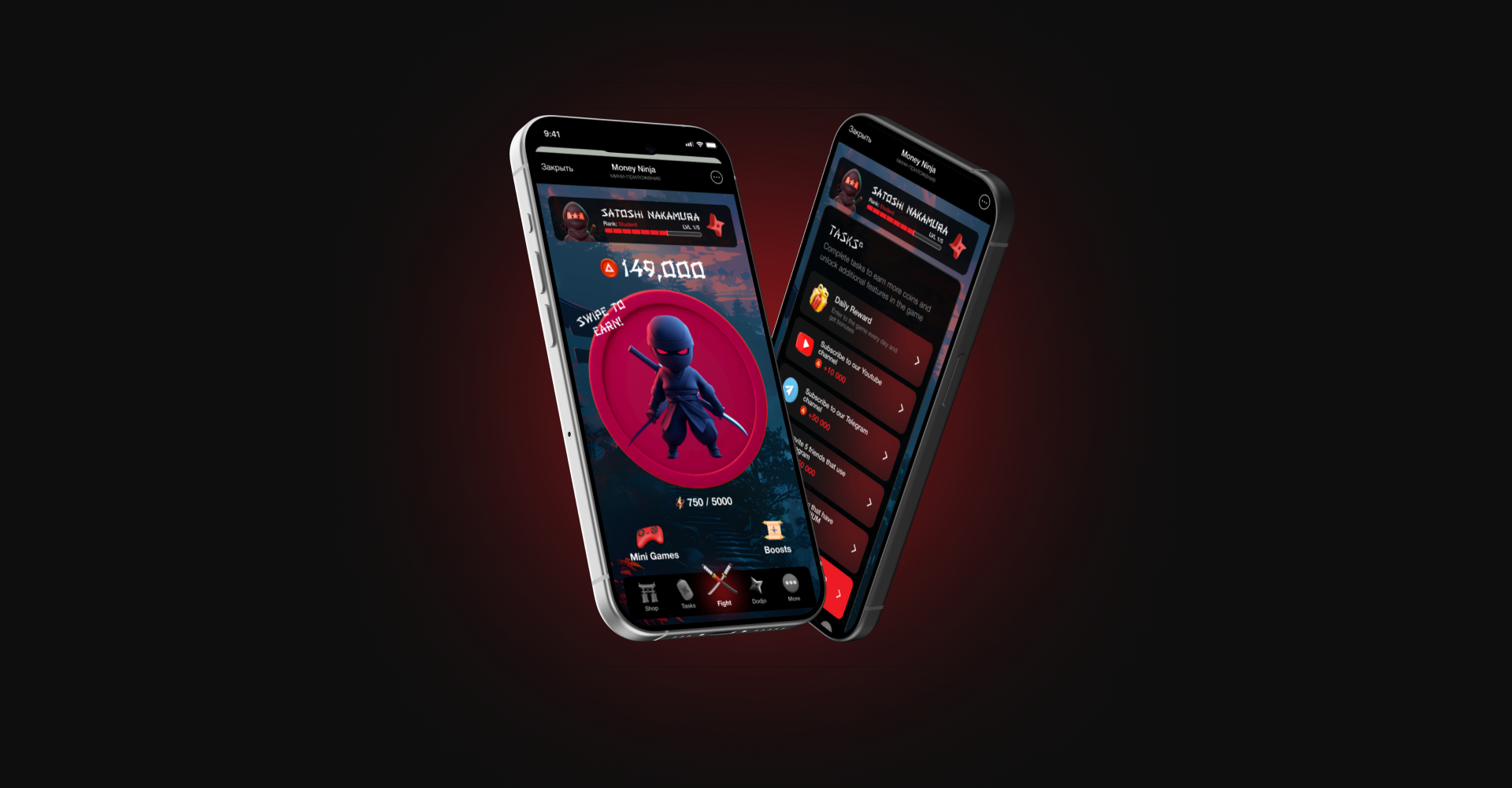 Создать Telegram Mini App-игру Money Ninja с PvP: матчмейкинг «Ниндзя vs Самурай», зоны удара и спецприём, внутриигровая экономика (coins per swipe), интеграция кошелька и оплат (USDT, BEP-20, карта), магазин и прокачка, лидерборд, прототипы и CI/CD.