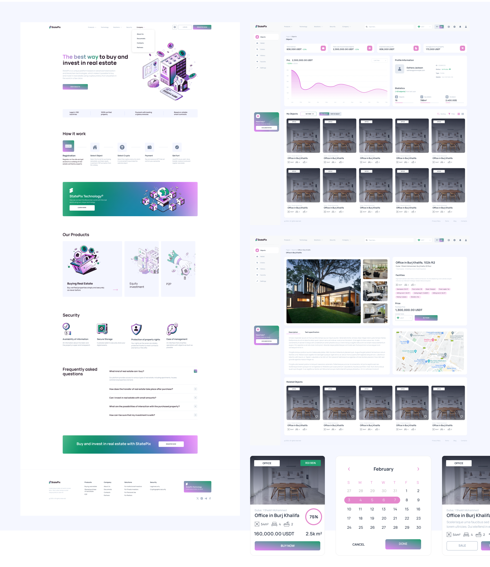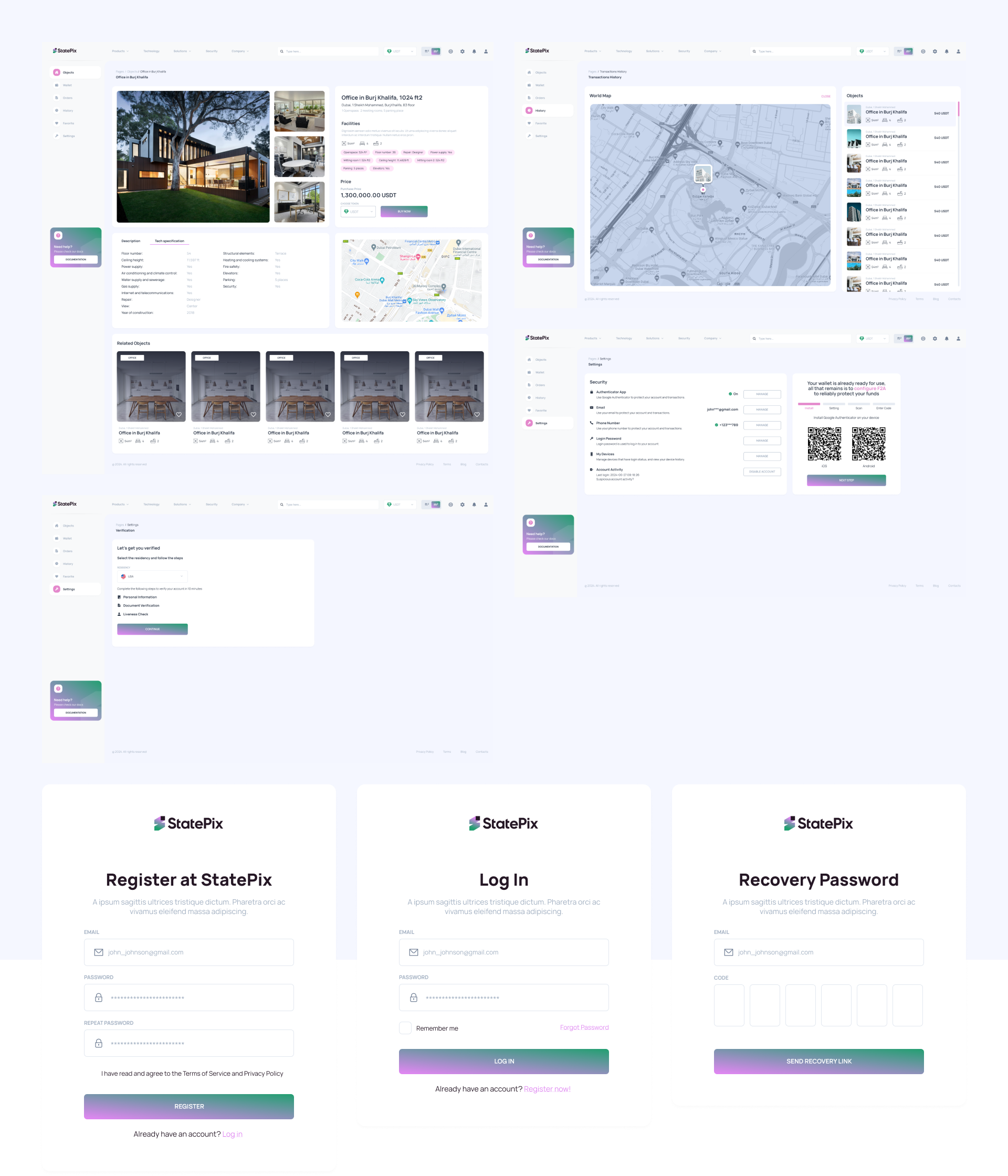 Платформа предоставляет пользователям возможность конвертировать недвижимость в NFT, выставлять объекты на продажу и совершать сделки через блокчейн. Реализована карта объектов, система фильтрации и безопасность через двухфакторную аутентификацию.