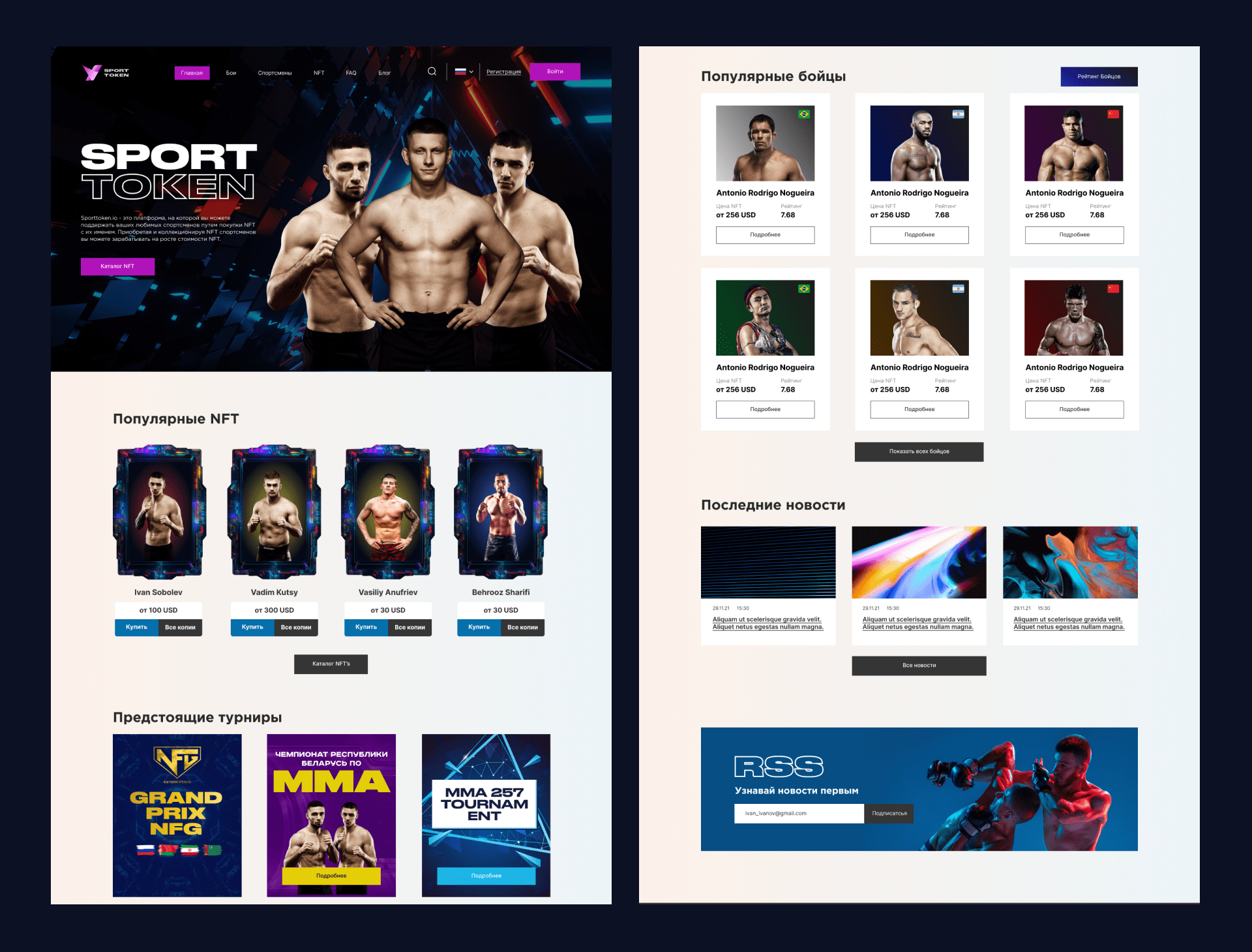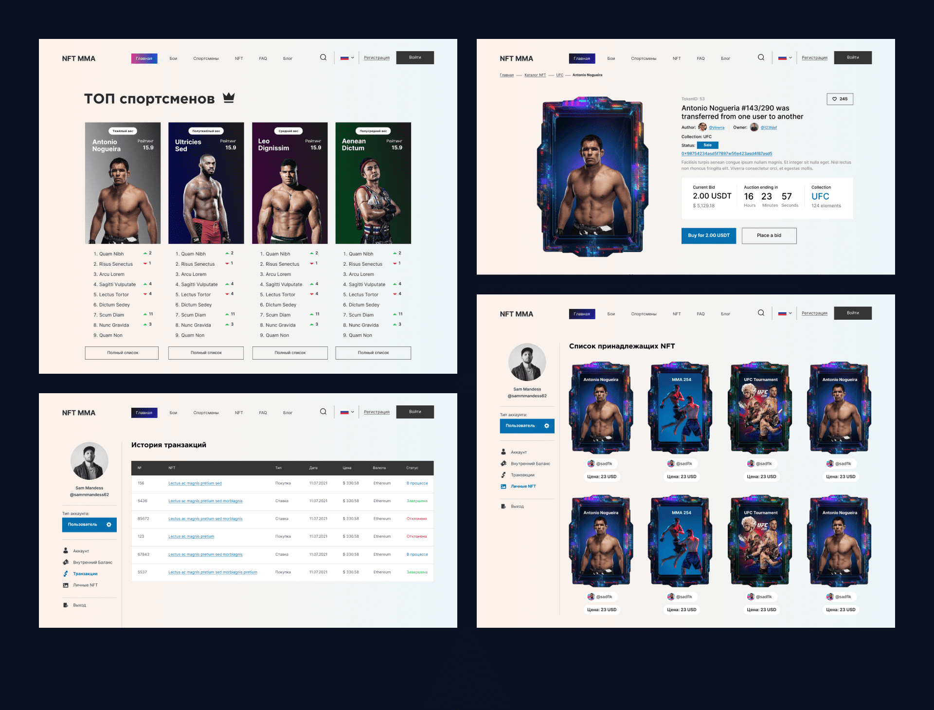 - Создание коллекционных карт NFT: команда проекта работала над созданием уникальных коллекционных карт спортсменов, включая изображения, статистику боев, турниров и другую информацию о бойцах.