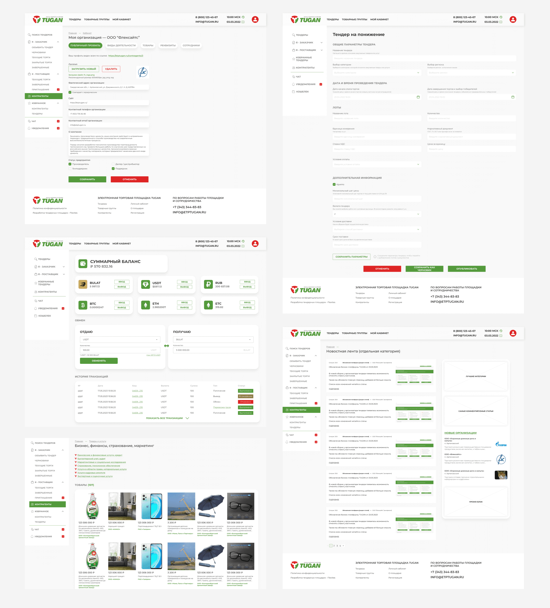- Интеграция мультивалютного криптовалютного кошелька в личный кабинет, поддерживающего блокчейны Ethereum, Bitcoin и Litecoin, для удобной и безопасной работы с криптовалютами в рамках тендеров.