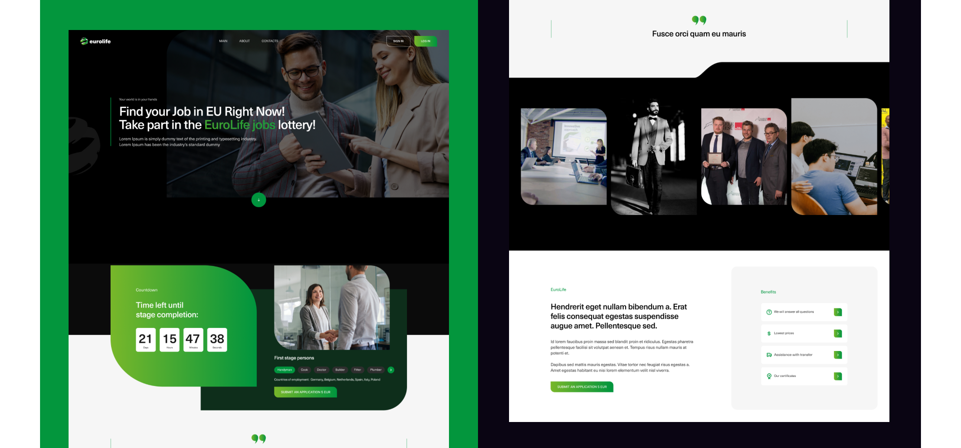 EuroLife - это платформа, предназначенная для облегчения трудоустройства специалистов из разных стран в Европейском Союзе. Проект предлагает удобную систему подачи заявок на вакансии и интегрированную лотерею для случайного выбора кандидатов.