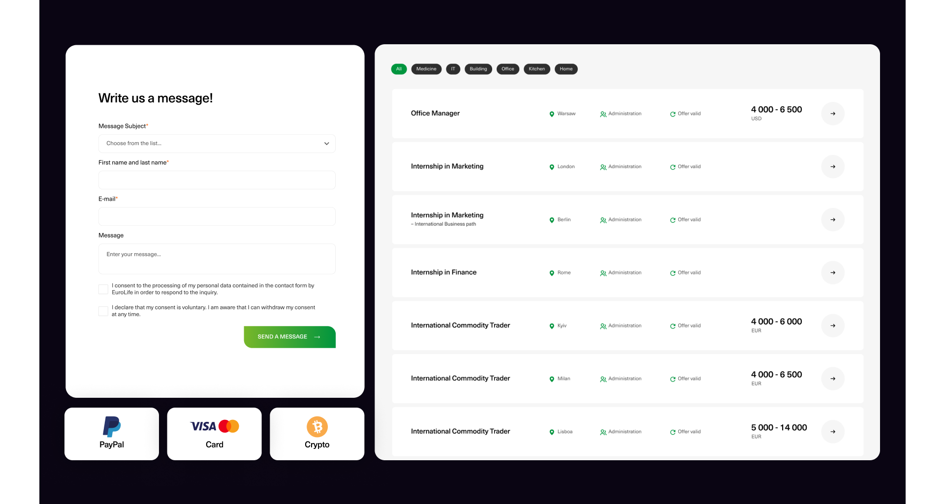 - Проект EuroLife относится к сфере HRTech и FinTech, объединяя технологии для автоматизации найма и финансовых транзакций.